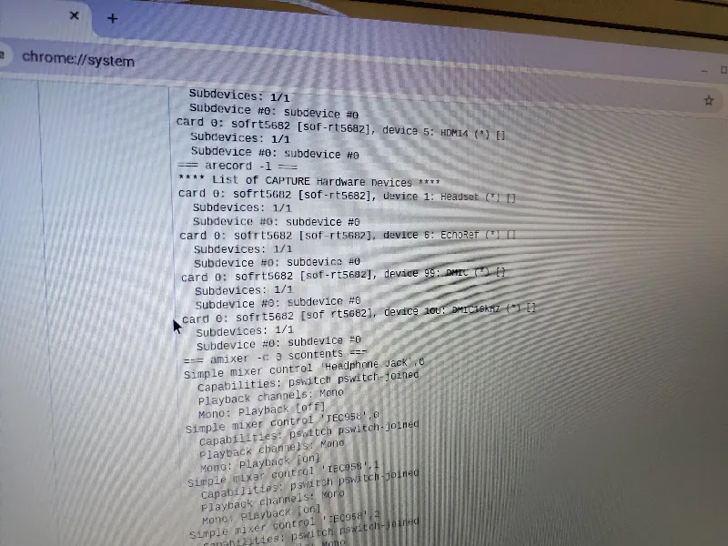 To my luck, I did find a Chromebook with an Intel Processor N100; the same SoC used by the LattePanda Mu used in this project. I was not able to get much data about the embedded controller through chrome-ec in chrome://system.
