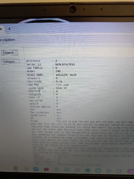 I took many photos of the chrome://system readout of both units though significantly more of the N100-based unit.